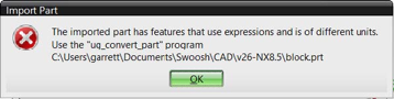 Note: NX does not allow the changing of the unit systems interactively within NX nor does it allow importing a part file of differing unit.