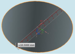 Then select two objects in the graphics area. A ruler and a value box appear with the value in part file units.